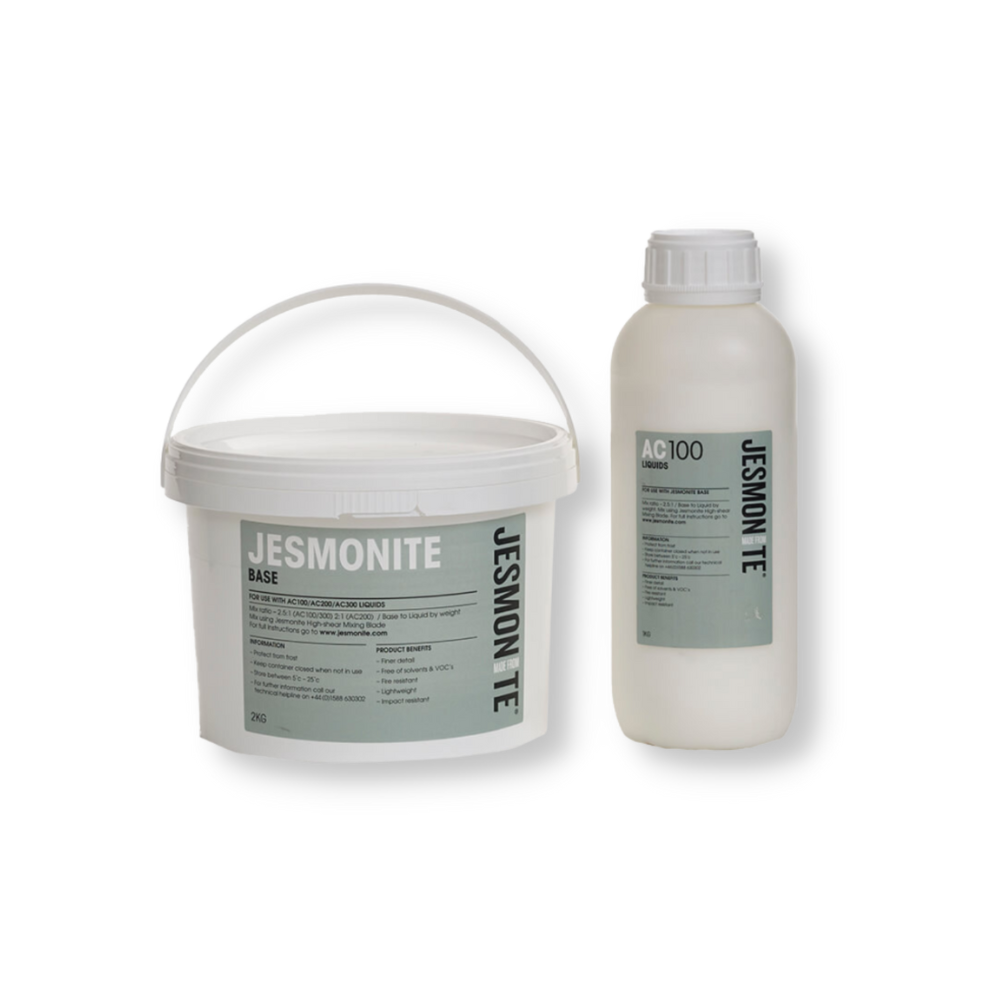 To use Jesmonite AC100, you'll need to mix the base and liquid components in the correct ratio. The recommended base to liquid ratio for Jesmonite AC100 is 2.5:1. You can mix the components by hand or with a drill-mounted mixer.